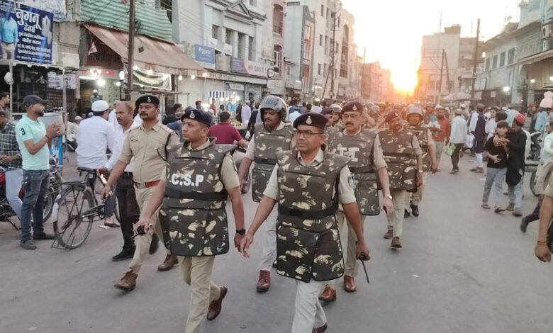 बुरहानपुर पुलिस द्वारा शहर में कानून व्यवस्था बनाए रखने एवं आगामी त्यौहारों को शांतिपूर्वक संपन्न कराने हेतु फ़्लैग-मार्च निकल गया