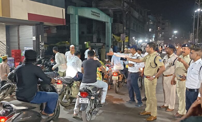 बुरहानपुर। पुलिस अधीक्षक बुरहानपुर श्री देवेंद्र पाटीदार के निर्देशन मे अतिरिक्त पुलिस अधीक्षक श्री अंतरसिंह कनेश नगर पुलिस अधीक्षक श्री गौरव पाटिल के मार्गदर्शन में यातायात थाना प्रभारी निरीक्षक श्री राजेश बारवाल एवं स्टाफ द्वारा रमजान त्योहार के चलते आज दिनांक 21.02.2026 को पुलिस बल एवं के साथ त्योहारों के चलते शहर की यातायात व्यवस्था को सुचारु रूप से संचालित करने के उद्देश्य से सड़क किनारे दुकानों द्वारा किए अतिक्रमण को हटाया गया उक्त कार्यवाही जय स्तंभ , मंडी चौक, सुभाष चौक,गांधी चौक ,फूल चौक कमल चौक, तक अतिक्रमण कार्यवाही की गई । आमजन एवं व्यापारियों से अपील भी की गई है कि त्योहारों के चलते शहर की यातायात व्यवस्था को सुचारू संचालन हेतु सड़कों पर सामान रख अतिक्रमण न करें। पुलिस द्वारा की जा रही कार्यवाही में सहयोग प्रदान करें साथी अस्त-व्यस्त एवं नो पार्किंग में लगे वाहनों पर चालानी कार्रवाई की गई।