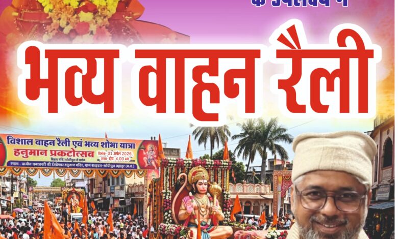 बुरहानपुर। बड़े गणपति मंदिर से विशाल वाहन रैली निकलकर गणपति नाका से होते हुए रिलायंस पेट्रोल पंप के सामने से शनवारा गेट से मण्डी चौराहे से ठाकुर कांप्लेक्स के सामने से सिटी कोतवाली के सामने से शनि मंदिर से भाई साहब की हवेली होते हुए राजपुरा से न्यामतपुरा से सालासर हनुमान मंदिर के सामने से आदर्श लाॅज के सामने से रास्तीपुरा हनुमान मंदिर परिसर पर वाहन रैली का समापन होगा।