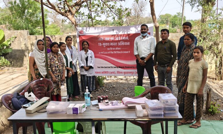 बुरहानपुर। कलेक्टर हर्ष सिंह के निर्देशानुसार एवं मुख्य चिकित्सा एवं स्वास्थ्य अधिकारी जिला बुरहानपुर डॉ राजेन्द्र कुमार वर्मा के आदेशानुसार जिले में 100 दिवसीय विशेष टीबी मुक्त भारत अभियान अंतर्गत ग्राम मांझरोद कलां एवं कानापुर रोड की बस्ती पर निवासरत श्रमिकों के लिए निक्षय शिविर आयोजित किया गए । जिसमें जोखिम जनसंख्या की टीबी स्क्रीनिंग, चेस्ट एक्स रे, बलगम सैंपल, जांच, शुगर, बीपी, BMI जांच की गई।